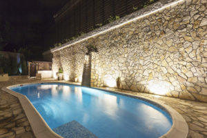 Modern outdoor private swimming pool at night